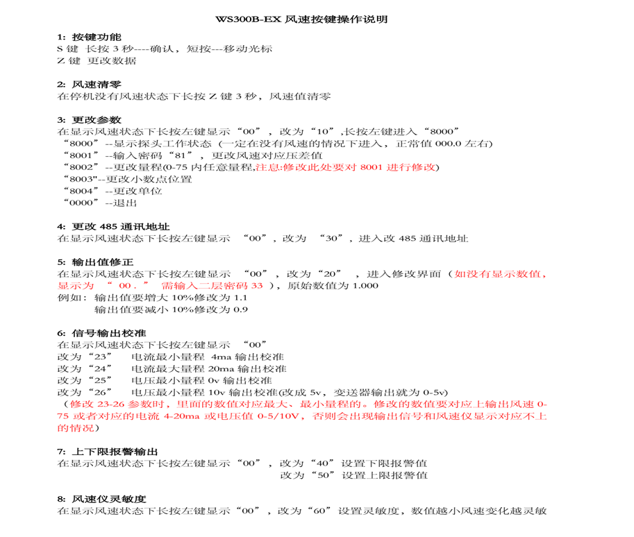 c.传感器异常,传感器输出电流不在4-20mA的范围内,调节风速仪23-26参数,对应模拟量输出电流或电压。