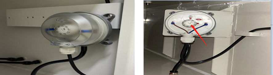 e、如下图 压差开关所在位置,其中,胶盖拆开后可设置压差报警值 出厂设置1500pa。